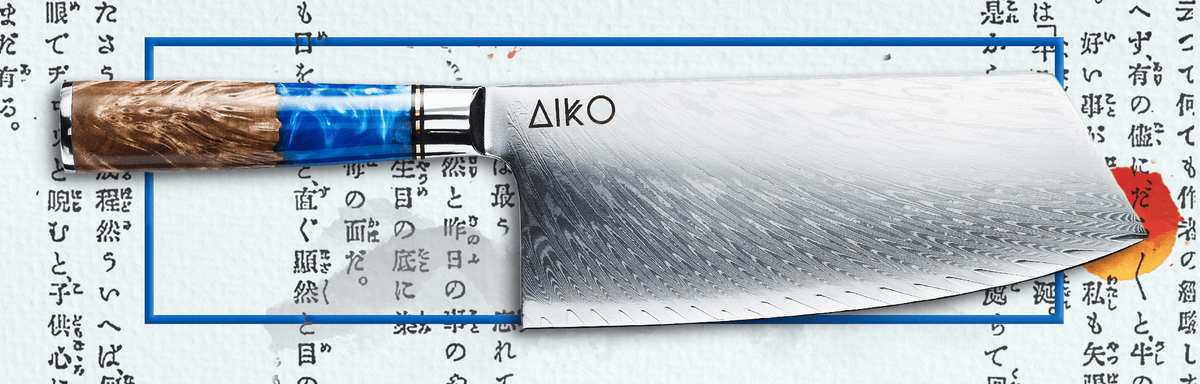 Aiko Blue (あいこ, アイコ) Damaskus -Stahlmesser mit farbigem Blauharzgriff